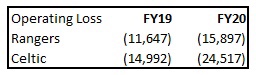 Interestingly, our operating loss in FY19 & 20 was lower than Celtics. However, they have been extremely good at player trading, a core part of their business model, selling Moussa Dembele and Kieran Tierney as well as the compensation received from Leicester when Brendan Rodgers left. To put it bluntly, since FY15, Celtic have sold £80m worth of players – their strategy has been a resounding success from a financial perspective. It is probably the final piece of the jigsaw that we need to get right on our recovery – more on this later.
