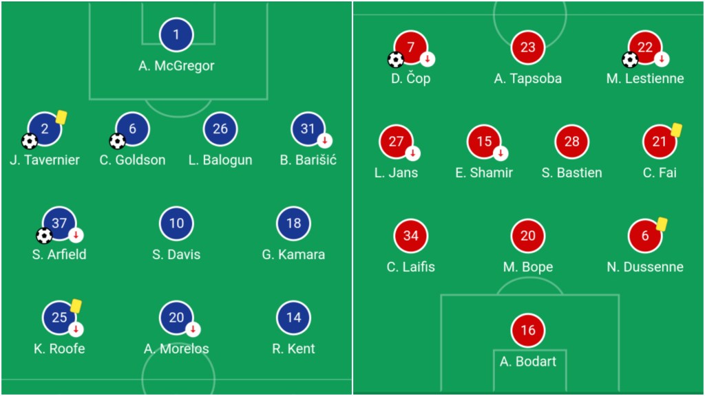 In attack Morelos and Roofe being central occupied the 3 man defence, Arfield and Kent also playing narrow brought the Standard midfield further back and allowed Barisic and Tavernier to easily overlap.