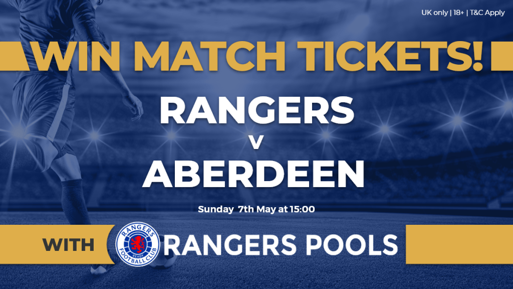 Sign up to Rangers Pools and play for just ÂŁ1 to be in to win Match Tickets for Rangers vs Aberdeen on May 7th.