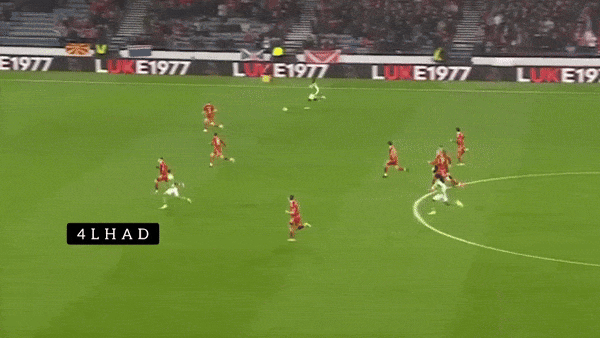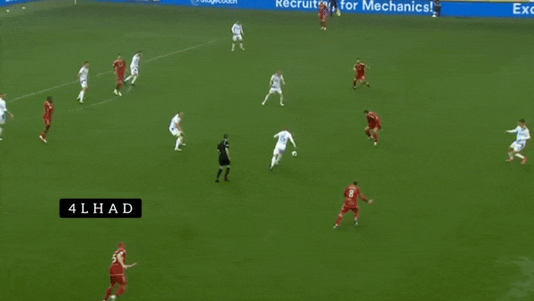 The most impressive passing, however, comes when he wins the ball or gets it under pressure. While he is happy to regularly play it quickly and simply retain possession in those areas, he also still likes to look for a quick ball in behind to catch a high line when the option is available.